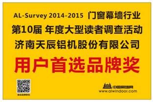 AL-Survey讀者調(diào)查活動(dòng)全稱:中國(guó)幕墻網(wǎng)年度大型讀者調(diào)查活動(dòng)暨“我最喜愛品牌”評(píng)選活動(dòng)。(以下簡(jiǎn)稱AL-Survey)我司作為設(shè)備領(lǐng)域的領(lǐng)先企業(yè),自上界獲得用戶首選品牌及市場(chǎng)表現(xiàn)獎(jiǎng)之后,2015年再次憑借“天辰鋁機(jī)”品牌在市場(chǎng)中的優(yōu)異成績(jī),強(qiáng)勢(shì)入圍2015-2016年度第11屆門窗幕墻品牌榜活動(dòng)。通過(guò)近十萬(wàn)名活動(dòng)參與者的票選,AL-Survey將成為我司年度市場(chǎng)品牌推廣與產(chǎn)品銷售、服務(wù)質(zhì)量的晴雨表。