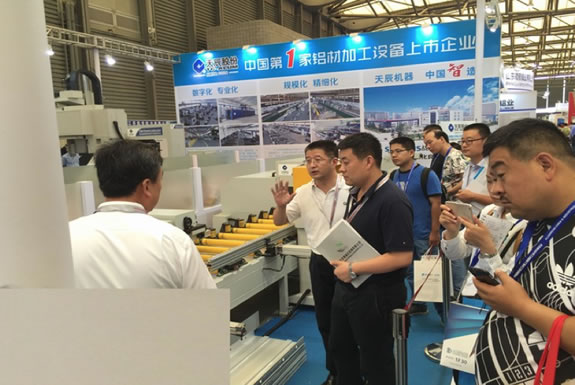 作為國內第一家鋁材加工設備上市企業(yè),天辰股份緊跟國內外工業(yè)鋁行業(yè)發(fā)展潮流,始終致力于高端鋁加工設備的研發(fā)與制造,此次天辰股份展出的鋁模板鋸沖自動生產線及數控五軸龍門加工中心獲得了廣大專業(yè)觀眾及業(yè)內參展企業(yè)的一致好評。尤其是自主研發(fā)的國內首臺鋁模板鋸沖自動生產線,以其先進的設計理念、超高的生產效率及大量節(jié)省人工的自動化程度,廣受贊譽。