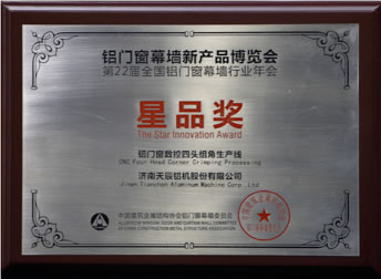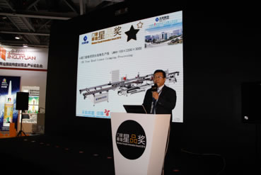 展會期間,在第二屆中國門窗幕墻年度星品評選中,天辰股份的數(shù)控四頭組角生產(chǎn)線以其填補國內(nèi)空白的先進的技術(shù)及超高生產(chǎn)效率,獲得評審及專家的一致好評,勇奪“星品獎”。天辰股份市場部傅旺經(jīng)理在星品發(fā)布會上對該設(shè)備進行了詳盡的技術(shù)闡述。