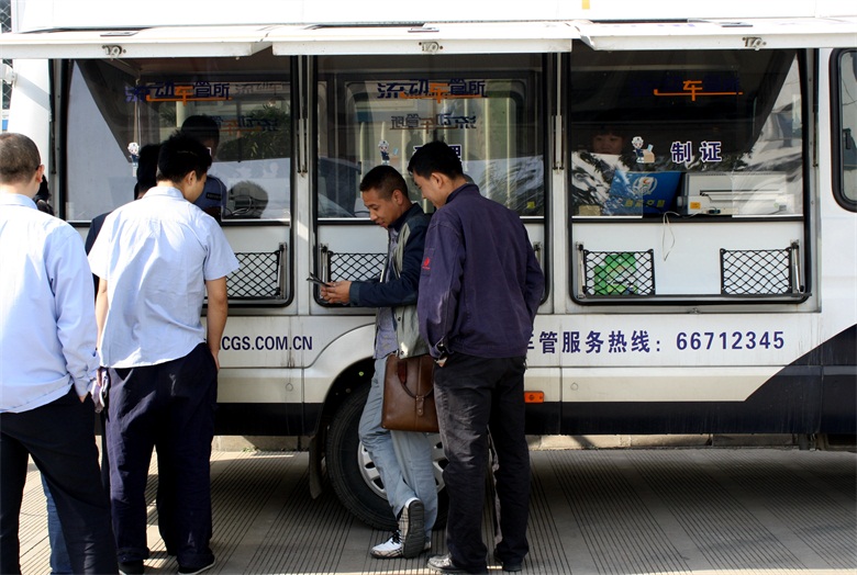 10月15日上午9點(diǎn)30分,服務(wù)車開進(jìn)濟(jì)南天辰鋁機(jī)股份有限公司,現(xiàn)場為企業(yè)員工辦理駕駛證、行駛證和機(jī)動(dòng)車年檢業(yè)務(wù)。據(jù)統(tǒng)計(jì),“流動(dòng)車管所”共為企業(yè)150余名員工辦理了駕駛證年檢業(yè)務(wù),發(fā)放宣傳材料、解答咨詢100余次。