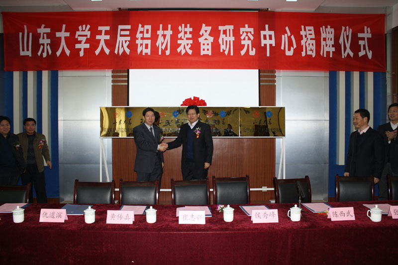 2012年12月26日上午,濟(jì)南天辰鋁機制造有限公司與山東大學(xué)工程機械學(xué)院產(chǎn)學(xué)研合作揭牌儀式在濟(jì)南天辰電教室隆重舉行。