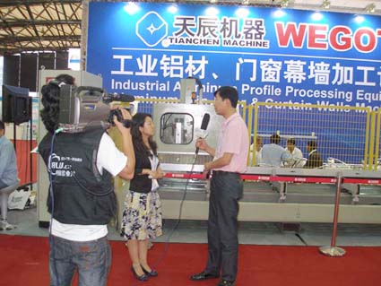 ??? 天辰集團(tuán)鋁機(jī)公司攜鋁門窗幕墻加工中心及鋁型材數(shù)控切割鋸兩臺(tái)產(chǎn)品參展,其中鋁機(jī)公司自主研發(fā)的數(shù)控任意角度轉(zhuǎn)擺鋸,一經(jīng)展出立即引起了各方的廣泛關(guān)注,該切割鋸以切割范圍大,鋸切精度高而獲得參觀者的一致好評(píng)。