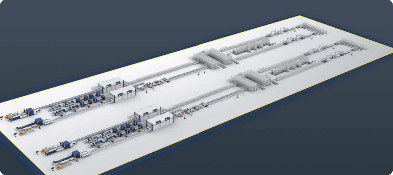 全球領(lǐng)先的超級(jí)門(mén)窗智能生產(chǎn)線,實(shí)現(xiàn)了從原材料上線到智能鋸切、激光鉆銑、智能分揀、自動(dòng)齊套、四頭同步組裝、自動(dòng)注膠、鉸鏈孔高效加工、智能RGVIAGV出入庫(kù)、凝膠緩存、門(mén)窗組裝調(diào)試、成品包裝等全過(guò)程的在線運(yùn)行,并配備了填補(bǔ)行業(yè)空白的智能分揀倉(cāng),自動(dòng)實(shí)現(xiàn)了窗體型材的分揀齊套,做到了全程不落地自動(dòng)流轉(zhuǎn)和數(shù)字化精準(zhǔn)管控。